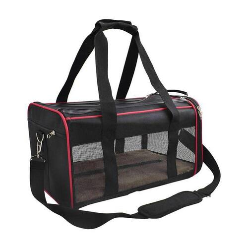 Bolsa Pet Transporte Vemelho + Par de Luva Tira Pelos Bolsa Transpote para Pet Viagem Duke & Dixie A Bolsa PET é confeccionada em material resistente; costura de alta qualidade com zíperes no acabamento. Suas abas laterais em tela fornecem uma ventilação saudável para o animal e permite manter contato visual com seu PET. Acompanha um tapete macio para garantir o transporte no conforto ideal Carregue o seu PET facilmente pelas alças curtas ou pendure no ombro com a alça comprida. E se preferir encaixe na mala de mão de forma conveniente durante sua viagem