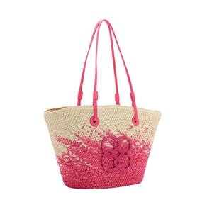 Bolsa de Praia Luxo Feminina Palha Ombro Chenson Poliuretano Fechamento com zíper Forro em tecido personalizado Compartimento para pequenos objetos Amplo espaço Logo Chenson em Madeira Alça poliuretano Acabamento em costura contrastante