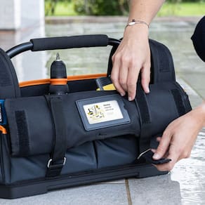 A bolsa possui um fecho de ziper em metal, garantindo seguranca para suas ferramentas durante o transporte. Alem disso, sua capacidade de peso e de 15Kg, perfeita para acomodar uma variedade de ferramentas sem comprometer a estrutura da bolsa. A bolsa vem equipada com uma alca embutida feita de tecido, permitindo que seja confortavelmente carregada no ombro.