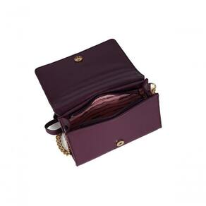 No formato quadrado, com tampa frontal com fechamento de botão, alça regulável de corrente e couro sintético, altamente resistente e confortável para ser carregada. Bolso