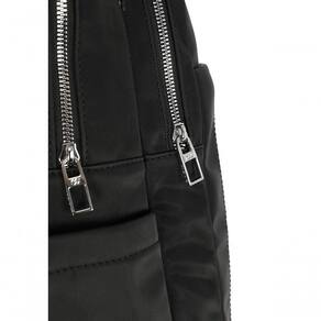 Modelo: BS72934GA Dimensões: 38 x 28 x 12 cm Capacidade: aproximadamente 13 litros Tamanho: Pequeno Polegadas: 15 (não indica tamanho exato de notebook; sempre verificar dimensões internas da mochila e comparar com as medidas do notebook) Material: Poliuretano (PU) Bolsos: dois frontais com zíper + um bolso livre Logo: em metal Fechamento: zíper personalizado Diferencial: alça carona para encaixe em malas de viagem
