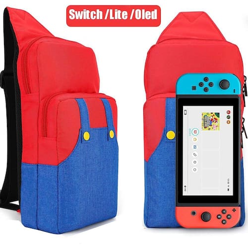 Bolsa Sling Nintendo Switch Oled Lite Vermelha e Azul Mario Bolsa tipo sling para transporte do Nintendo Switch e acessórios. Compatível com Switch Padrão, Oled e Lite. Material: tecido oxford respirável. Dimensões da bolsa: 31cm x 17cm x 8cm Comprimento da alça: ajustável entre 45cm e 73cm Peso: 170g Fotos ilustrativas, não acompanha console ou acessórios. Marca: 123Games