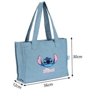 Características Principais: - Modelo: BS76020SC - Compartimento principal com fechamento em zíper personalizado - logo atoalhado Stitch - Bolsos internos para organização - Alça de ombro confortável - Zíper exclusivo - Material: Poliéster com efeito jeans