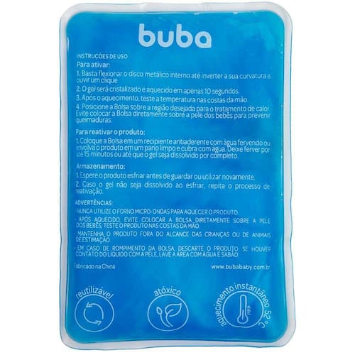 A Bolsa Térmica em Gel Instantânea da Buba é indicada para aliviar as cólicas em bebês e em adultos. Auxilia também no tratamento de dores e inflamações através de terapia de calor.