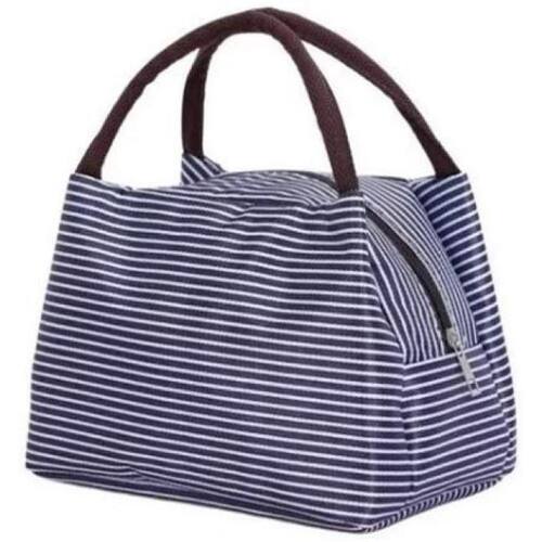 Bolsa térmica lancheira, marmita listrada feminina fitness Cor: azul Descrição