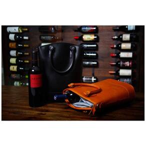 Uma sacola de vinho de couro com isolamento de luxo carrega 2 de suas garrafas de vinho favoritas. Perfeito para degustação de vinhos, piqueniques, despedidas de solteira, Traga sua própria bebida e presentes. Bolso frontal de zenamento para transportar um abridor de vinho ou acessórios. Mantém o vinho na temperatura ideal. A divisória acolchoada removível fornece proteção superior para garrafas e isolamento extra. O bolsa também pode ser sem divisória. Opções de transporte versáteis. Duas alças de couro permitem que a bolsa seja transportada e uma alça ajustável e removível é fornecida para uso no ombro ou no corpo. À prova de vazamentos, limpa facilmente, segura para alimentos e durável. Tamanho 34 x 27 x