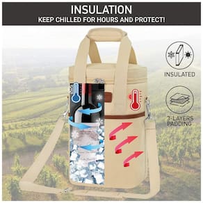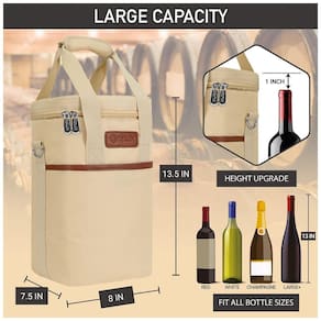 DESIGN CONVENIENTE E INTELIGENTE Apresenta uma alça de ombro ajustável e destacável junto com alças de mão acolchoadas para diferentes estilos de transporte. A aba interior versátil garante que suas garrafas de vinho caibam independentemente do tamanho e oferece proteção acolchoada na divisória.