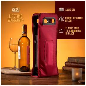 Mantém as garrafas frias Ao contrário dos pacotes de gelo ou sacos de vinho de neoprene, o gel sólido em nossa bolsa de transporte de vinho congela rapidamente e mantém suas garrafas de vinho frias por horas. Fácil de usar uma obrigação para seus acessórios de vinho. Ao contrário dos baldes de gelo ou bolsas térmicas, nosso porta vinho não requer gelo. Coloque nossa bolsa de vinho no freezer por algumas horas. Quando estiver pronto para ir, tire o do freezer e coloque sua garrafa de vinho ou garrafa de champanhe dentro. Nossa bolsa de transporte cabe na maioria das garrafas de tamanho. Design de qualidade Nossos sacos de refrigeradores de vinho congeláveis são feitos de nylon resistente a perfurações de alta qualidade. Os lados elásticos permitem que nossa manga de vinho se encaixe na maioria dos tamanhos de garrafa. Presente perfeito para entusiastas do vinho Nossa bolsa de vinho congelável é o presente de vinho perfeito para mulheres ou homens em qualquer ocasião
