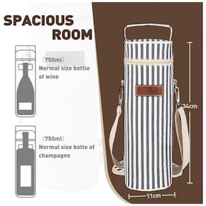 A Bolsa Térmica para Uma Garrafa de Vinho da Tirrinia é o acessório perfeito para transportar seu vinho com segurança e estilo. Com alça de ombro e zíper, é ideal para viagens, picnics, praia e concertos ao ar livre. Mantenha sua garrafa de vinho gelada por horas com três camadas de isolamento e zíper selado. Além de proteger a garrafa de quebras, a bolsa é fácil de limpar e possui revestimento à prova de vazamentos. Surpreenda amantes de vinho com este presente elegante e prático, perfeito para diversas ocasiões!