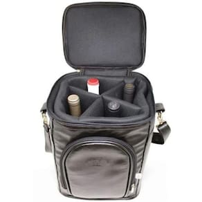 Bolsa Térmica para Vinho - Wine Deluxe Marrom para 4 Garrafas GPT763 Bolsa Térmica para Vinho - Wine Deluxe Marrom para 4 Garrafas ou 2 garrafas + 2 taçasA Bolsa Térmica para Vinho Wine Deluxe foi desenvolvida para admiradores de um bom vinho. Praticidade, elegância e um design exclusivo são algumas das características desse produto. Seu revestimento interno em pluma dublada, preserva o vinho das oscilações de temperatura, mantendo-o conservado por um período muito maior. Ótima opção para presentear seus amigos e familiares.Material externo confeccionado em couro ecológico.Bolso frontal para acessórios (Ideal para guardar saca rolha, cortador de lacre, termômetros, anel de gargalo ou aerador).Compartimento interno para 4 garrafas ou 2 garrafas e 2 taças. Características:Medidas Externas: 25 x 25 x 31 cm.Medidas Internas: 24,4 x 24,4 x 29 cm. Material Externo: Couro Ecológico.Material Forro: Tecido Pluma Dublada. Alça: (maior) 120 x 3 cm; (menor) 27 x 3 cm. Instruções de Uso:Ao transportar objetos pontiagudos ou cortantes certifique-se de que estão devidamente embalados, evitando danos a parte interna da bolsa.Para limpeza, tanto interna quanto externa, utilize somente sabão e pano úmido.Não recomendado expor a bolsa diretamente ao sol. EAN: 7898962011072 Marca: Polar Store
