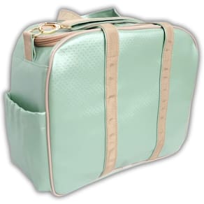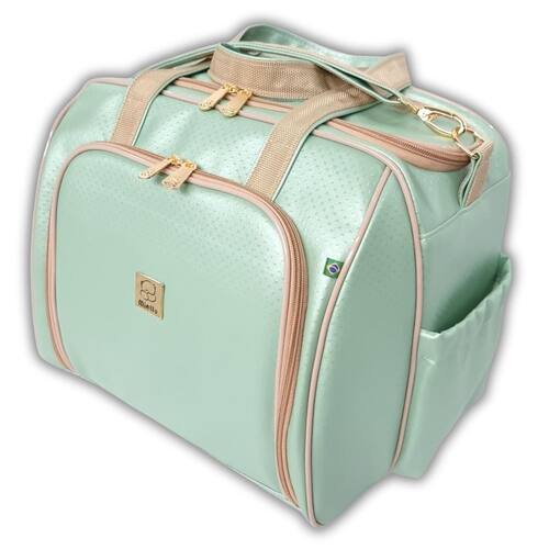 - internamente forrada em bagum branco, garantindo higiene, facilidade de limpeza e durabilidade, sem agregar peso a bolsa.