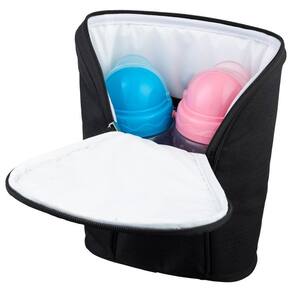 Bolsa Térmica Porta Mamadeiras para Bebê Preto - Pimpolho Cor: Preto bolsa térmica Porta Mamadeiras em tecido sintético poliéster na parte externa. Possui alça de mão, revestimento interno térmico e fechamento por zíper. O elástico interno que serve para dar suporte para a mamadeira. Foi criada especialmente para deixar o dia a dia da mamãe muito mais prático.O porta mamadeira consegue manter aquecido por até 4 horas e resfriadas por até 5 horas. O material é resistente e fácil de limpar.