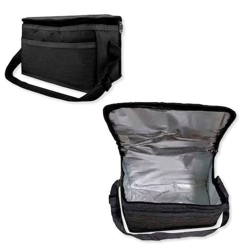 Porta Marmita Bolsa Térmica Preta Bolsa térmica ideal para manter seus alimentos e bebidas na temperatura correta de conservação. Com manta de alumínio na parte interna, auxilia na retenção de temperatura e conservação do conteúdo. Tem capacidade de 4 litros, muito espaçosa, cabe marmitinhas fit, lanches e até bebidas, use no dia a dia para levar ao trabalho ou academia, além de ser ótima para levar em viagens longas. Tem uma alça para auxiliar no e quando vazia fica bem compacta. ESPECIFICAÇÕES: Material: 50% Poliéster 30% Espuma e 20% Alumínio Peso: 135g (aprox.) Dimensões: 23,5cm largura x 14,5cm altura x 14,5cm profundida de Linha Viagem Com Alça Térmica Cor: Preta CONTÉM: 01 Bolsa Térmica Porta Marmitas Preta