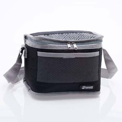 - Design prático e exclusivo; - Alça tiracolo; - Multicamadas para conservar a temperatura; - Revestimento externo de Poliéster; - Revestimento interno PVC para evitar vazamento -capacidade - 5 litros -Cor: Preta com cinza 6 - latas 350 ml ou 4 - latas 473 ml Dimensões e Peso Largura 22 cm - Profundidade 17 cm - Altura 17 cm Ean: 7898943563415