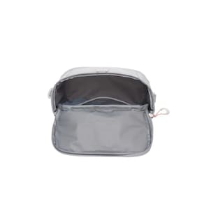 Seu forro térmico ajuda a conservar líquidos ou alimentos, enquanto a rede com elástico no interior mantém os itens no lugar. A bolsa pode ser carregada pelas alças de mão com botão de pressão — que também permitem prender ao carrinho — ou pela alça transversal ajustável e removível, oferecendo versatilidade no uso. O bolso traseiro funcional facilita o acesso rápido a itens menores, como documentos ou paninhos.