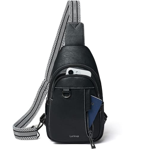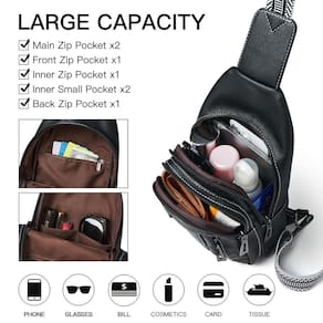 - ?Material premium?Nossa nova bolsa transversal feminina é feita de couro sintético premium, o corpo da mochila peitoral e as alças de ombro são reforçados com costura resistente para durabilidade. Um orifício para fone de ouvido no bolso traseiro permite que você curta música facilmente.
