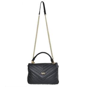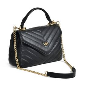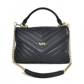 Bolsa Tiracolo sintético tamanho médio, no formato quadrado com matelassê e logo em metal VM na tampa. Alça de mão fixa e alça de ombro de corrente com ombreira e mosquetões removível. Dois bolsos internos com zíper e divisória. Fechamento com tampa e botão magnético.