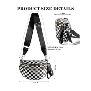 Bolsa transversal quadriculada preta e branca para mulheres, bolsa quadriculada espaçosa, pochete com alça de ombro - ?Cruz elegante?Esta elegante bolsa tiracolo apresenta um padrão quadriculado, adicionando um toque de sofisticação a qualquer roupa e adiciona um estilo extraordinário ao seu uso diário. Faz você se destacar da multidão. - ?Material de tecido durável?Feita com materiais de alta qualidade, resistentes ao desgaste e práticos, esta bolsa é feita para suportar o uso diário e fácil de limpar, e mantém a aparência como nova - ?Organizado e grande capacidade? Tamanho da bolsa tiracolo xadrez: 32,5 x 14,2 x 22,4 cm. Esta bolsa de cinto tem três bolsos na parte externa e um bolso grande e um bolso com zíper no interior. Fácil de acessar e anti-roubo. Esta pochete pode guardar todos os seus itens essenciais, como batom, óculos de sol, guarda-chuva, celular, bateria recarregável, etc. - ?Praticidade encontra a moda?Padrão de moda xadrez 2025 e design de bolsa espaçoso, prático e ousado. Esta pochete se ajustará aos seus diferentes estilos de roupas. Ajuste diferentes alças de ombro para se transformar facilmente em bolsa de ombro, bolsa transversal, bolsa de mão, bolsa de peito. - ?Alças de ombro amigáveis?As alças ajustáveis medem até 138 cm de comprimento, tornando-as não apenas adequadas para tamanhos grandes, mas também para pessoas altas! As alças são totalmente removíveis, facilitando a substituição pelo seu próprio tipo de alça! Alças largas para que você não se canse por um longo tempo enquanto estiver fazendo compras, viajando ou caminhando.