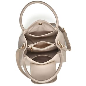 Bolsa tote feita em PU soft. Alça de mão estruturada. Alça extra tiracolo de PU removível com ajuste de tamanho. Abertura do principal com zíper de metal e puxador com logo via marte, os outros dois com lapela de PU e botão magnético. Peça forrada com bolsos internos sendo um de zíper. Peça principal de metal com logo via marte.