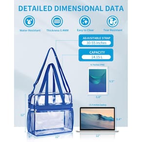 Bolsa transparente versátil e elegante para eventos em estádios – a companhia perfeita para qualquer ocasião! Esta bolsa transparente não apenas atende aos regulamentos do estádio, mas também se encaixa perfeitamente na praia, escritório, almoços casuais, shows, jogos esportivos, festivais e sua próxima aventura de viagem. Esta bolsa transparente para estádio é feita com material de PVC à prova d'água, mantém seus pertences seguros e secos, mesmo na chuva. As dimensões espaçosas de 30 x 15 x 30 cm oferecem muito espaço para todos os seus itens essenciais, atendendo a homens e mulheres. Projetado com a conveniência em mente, possui um fecho de zíper seguro, um bolso frontal para acesso rápido e alças confortáveis para facilitar o transporte manual. A alça de ombro transversal removível adiciona um toque de versatilidade às suas opções de transporte. Se você precisa de um presente atencioso, um organizador eficiente ou uma bolsa de fraldas elegante, esta bolsa de plástico transparente é uma escolha prática e moderna para adultos ocupados em movimento. Mantenha-se organizado e à frente das tendências com esta bolsa transparente que combina perfeitamente moda com funcionalidade. - Aprovada pelo estádio: a bolsa transparente para eventos em estádios está em conformidade com o padrão de política de bolsas transparentes de 30 x 30 x 15 cm e é completamente transparente em todos os lados (incluindo a parte traseira e a parte inferior) para facilitar as verificações de segurança. - ?Material de longa duração? - Feita de PVC resistente à água, a bolsa transparente é grossa o suficiente para carregar cargas pesadas, e todas as costuras foram atualizadas para costura dupla para resistir a rasgos. - Grande capacidade: a bolsa transparente para estádio mede 30 x 15 x 30 cm e é grande o suficiente para guardar uma câmera digital, laptop, iPad, fraldas, pastas e muito mais, além de um bolso para acessórios e 2 bolsos laterais. - ampla variedade de usos: versátil e potente, esta bolsa transparente para mulheres pode ser usada como uma lancheira transparente ou uma bolsa de fraldas transparente, tornando-a uma companhia confiável para shows, festivais, viagens, trabalho ou eventos esportivos. - ?Bolsa transparente para estádio?As alças a tornam facilmente portátil, muito resistente e com bom tamanho de 30 x 15 x 30 cm, adequada para eventos esportivos, shows, aeroportos, estádios, trabalho, viagens, praia, festivais e uso diário.