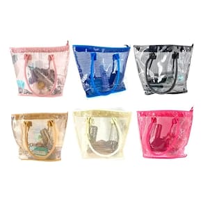 Bolsa Transparente Plástico Rendado Praia Piscina Cor:Azul
