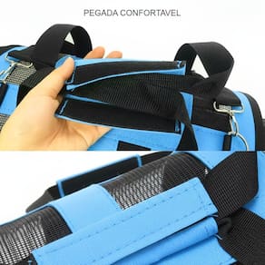 A Bolsa Pet foi desenvolvida para você poder transportar seu pet com mais facilidade. Ela possui dois tipos de alça uma para carregar com as mãos e outra para pendurar no ombro. Foi confeccionada com materiais de alta resistência, sua costura de alta qualidade com zíperes no acabamento e possui abas laterais em tela que fornecem uma ventilação saudável para o seu bichinho de estimaçao e permite manter o contato visual.
