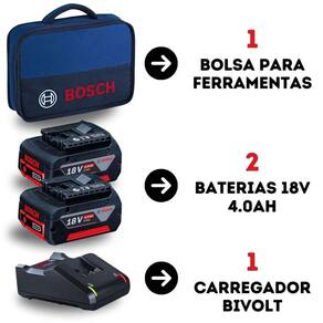 Kit 2 Baterias 18v 4.0Ah e 1 Carregador Bivolt 1600A02RM8000 BOSCH