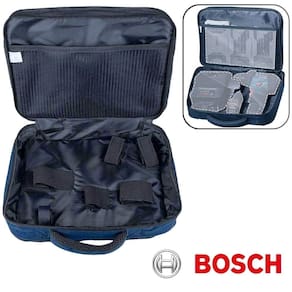 Organização e Praticidade no Transporte: A bolsa de transporte Bosch, fabricada em nylon resistente, oferece um armazenamento compacto e seguro para suas ferramentas e acessórios. Com divisórias internas e zíper de fácil acesso, ela mantém suas ferramentas organizadas, facilitando o transporte, enquanto o kit de baterias Bosch oferece energia duradoura para suas ferramentas sem interrupções.
