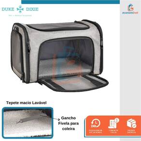 Características técnicas: Dimensões da bolsa: 28cm altura x 28cm largura x 43cm comprimento Dimensões do Tapete: 24cm x 43cm Peso suportado: Até 14kg Material: Tecido Oxford e Poliéster Peso do produto: 1kg Indicado para: Cães e Gatos Marca: Duke e Dixie
