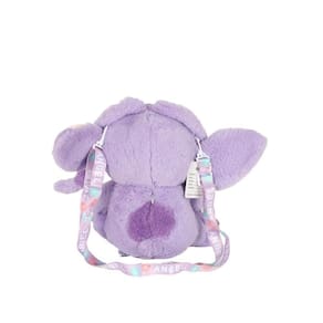 Este modelo transversal possui design atrativo, confeccionado em material externo de pelúcia que proporciona um toque macio e agradável. As alças na cor roxa complementam o visual e garantem conforto ao carregar.