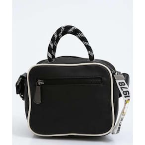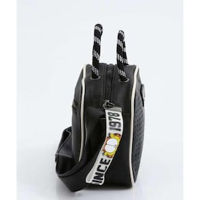 Bolsa feminina, modelo transversal, confeccionada em material sintético com recorte. Possui repartição única com fechamento por zíper, alça ajustável e removível, alça de mão dupla, bolso externo e interno com zíper, forro em tecido, acabamento e costura no tom.
