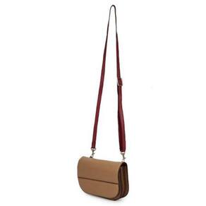 Bolsa feminina, modelo transversal, confeccionada em material sintético com textura. Possui repartição tripla com fechamento por lapela com imã, alças transversal ajustável e removível, acabamento e costura no tom.
