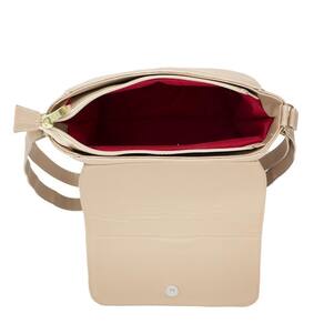 Bolsa twist confeccionada em material sintético de alta qualidade, com metal dourado na parte frontal, material interior com forro TNT reforçado vermelho, bolso interior sem zíper, com alça regulável de alta qualidade.