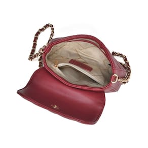 Bolsa Crossbody mini em PU com detalhes em matelassê geométrico. Design retangular com bordas arredondadas e alça de corrente fixa. Fechamento com tampa e botão magnético. Inclui bolso interno no forro, ideal para itens pequenos. Perfeita para adicionar elegância a qualquer look. Placa frontal VM de metal circular.