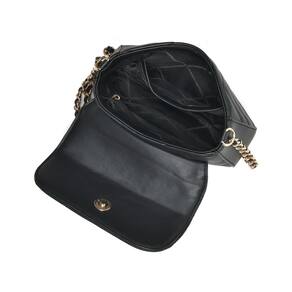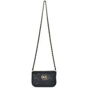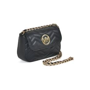 Bolsa Crossbody mini em PU com detalhes em matelassê geométrico. Design retangular com bordas arredondadas e alça de corrente fixa. Fechamento com tampa e botão magnético. Inclui bolso interno no forro, ideal para itens pequenos. Perfeita para adicionar elegância a qualquer look. Placa frontal VM de metal circular.