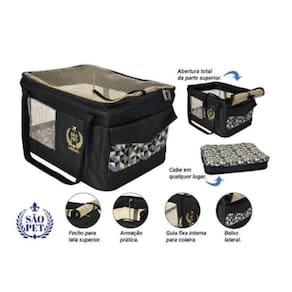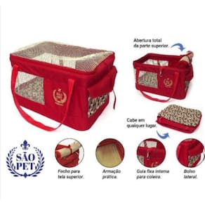 CARACTERÍSTICAS - Abertura total da parte superior para facilitar o acesso e respiro. - Fecho para tela superior. - Armação interna extremamente pratica e articulada (se fecha completamente), facilitando o armazenamento. - Guia fixa interna para coleira. - Bolso lateral para armazenamento de artigos ou documentos do pet.