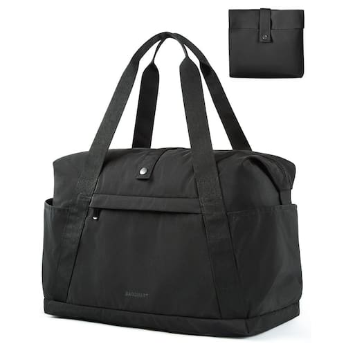 A bolsa feminina não é apenas perfeita para escapadas de fim de semana, mas também pode funcionar como itens pessoais para acompanhar sua mala em viagens mais longas. Portanto, elas são ideais para colocar em sua bolsa principal ou levar em uma viagem quando você precisar de capacidade extra de carga. E quando você não estiver viajando, esta mochila pode até ser usada como bolsa de ginástica ou bolsa de trabalho para uso diário. - Aprovada por companhias aéreas: Tamanho desdobrado: 41,5 (C) x 17 (L) x 33,4 (A) polegadas. Limite máximo de capacidade: 23L. Esta bolsa esportiva dobrável pode ser um item pessoal para a maioria das companhias aéreas. Dica: é melhor não encher demais sua bolsa para não exceder os requisitos de tamanho da bolsa de itens pessoais da companhia aérea - Fácil de viajar: a manga na parte de trás permite que você deslize a bolsa sobre uma mala com rodinhas e pode passar pelo aeroporto com conforto. a bolsa também vem com 1 compartimento espaçoso, 1 bolso frontal grande + 1 bolso interno com zíper + 2 bolsos laterais. Conveniente para você organizar rapidamente seus itens essenciais de viagem para voar - Dobrável e antirrugas: simples e fácil de dobrar, coloque um na sua mala ou mochila caso precise de capacidade extra ao viajar. A bolsa de viagem dobrável é ideal para quem tem espaço apertado no armário. Tem fortes propriedades antirrugas e volta rapidamente à planicidade depois de ser dobrada e aberta novamente - Durabilidade e resistência a rasgos: esta bolsa esportiva de viagem é feita de material resistente à água e durável, tem uma construção robusta e zíperes de metal lisos premium, para que você não precise se preocupar em rasgar - Multiuso: esta bolsa esportiva é um complemento perfeito para sua coleção de bagagem e funciona bem para viagens rápidas. Não é apenas essencial para viagens, mas também pode ser usada como bolsa de compras, bolsa de hospital, bolsa de fim de semana, sacola, bolsa esportiva, bolsa de viagem e bolsa de fraldas