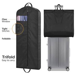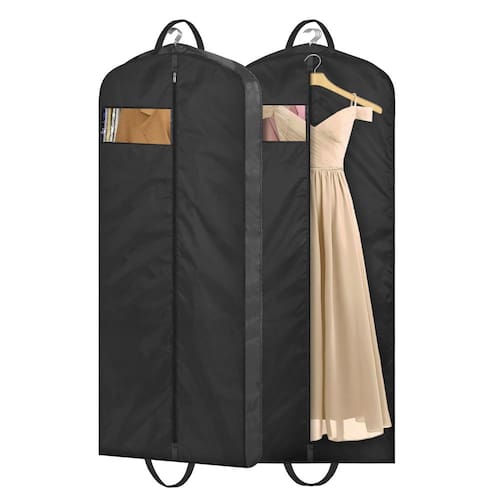 2 pacotes de bolsas de roupas penduradas para viagens com reforços de 10 cm. A bolsa de vestuário grande comporta facilmente 6 vestidos de noiva, 6 ternos ou 8 a 10 camisetas para mulheres e homens, ocupa menos espaço do que outras bolsas de roupas finas para viagens. O comprimento de 137 cm é adequado para vestidos, vestidos de noite, sobretudos, vestidos de baile, roupões, fantasias de dança, suítes e fantasias, a forma das roupas pode ser mantida sem rugas. A bolsa de vestuário pode manter suas roupas longe de poeira, água e pelos de animais de estimação, ótima para manter as roupas frescas, inodoras e sem rugas. Material dos sacos de vestuário para vestidos leve/respirável/lavável/à prova de poeira/resistente a rasgos. Ocasiões aplicáveis para bolsas de roupas para viagem de carro / armazenamento de armário/casamento/mudança 2 alças resistentes. Os sacos de vestuário pendurados para armazenamento de armário têm 2 alças resistentes para facilitar o transporte e dobrar. As capas de vestido podem ser colocadas em uma mala e economizam muito espaço. Janela transparente A bolsa de vestuário resistente tem uma janela transparente, que pode identificar rapidamente as roupas do guarda-roupa sem ter que abrir a bolsa. Zíper resistente. A bolsa protetora vem com um zíper suave, um zíper de comprimento total facilita abrir e fechar as capas de roupas. Quando se trata de bolsa de vestuário à prova d'água ou bolsas de vestuário para mudança, você sabe comprá-lo. A bolsa de roupa dobrável durará o teste do tempo e veremos como ela aguenta bem. - ? Comprimento 137 pol. ?A bolsa de viagem de 137 cm é adequada para vestidos, casacos de inverno, ternos, jaquetas e vestidos, ótima para viagens de carro e armazenamento sazonal - ?Reforço de 10 polegadas?A bolsa social para viagens tem reforços de 10 cm, pode conter 6 vestidos ou 3 casacos de inverno em cada bolsa longa, sem aglomerar e causar rugas - ?Tecido resistente?Os sacos de vestuário para pendurar roupas de viagem são feitos de tecido de forro leve, resistente à água e à poeira, e não são fáceis de rasgar, ótimos para organizar e manter as roupas livres de poeira - ?Fácil de transportar?A bolsa de roupas para vestidos longos pode ser dobrada ao meio para facilitar o uso como bolsa de mão e tem duas alças resistentes para facilitar o transporte, o que pode economizar muito espaço - ?Janela transparente e zíper resistente?Os sacos de vestuário para armazenamento têm uma janela transparente para facilitar a identificação do seu item de roupa. Zíper suave que percorre quase todo o comprimento, facilita colocar e tirar roupas. Com patente uspto: US D897,101 S