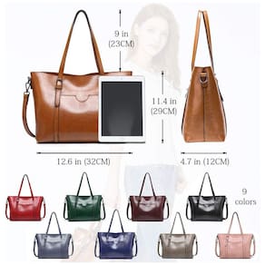 Importado DESIGN DE MODA A bolsa grande Pahajim tem duas alças que podem ajustar o comprimento e são longas o suficiente para carregar no ombro. Além disso, esta bolsa de mão tem uma alça transversal removível correspondente. Você pode transportar esta bolsa de 2 maneiras bolsa de ombro ou bolsa. O estilo unqiue e fashion é fácil de usar, você pode carregá lo para a escola, faculdade, escritório, compras, viagens e namoro. VERSÃO ATUALIZADA A bolsa de trabalho da moda Pahajim é feita de couro artificial de alta qualidade couro sintético ecológico, não couro com todos os pontos em linhas limpas e ordenadas. Há um zíper anti roubo na parte superior da bolsa. Material impermeável, fácil de limpar, resistente, durável, anti riscos, anti desgaste, zíper liso, forro de poliéster, bom acabamento. DIMENSÕES 12,6 L x 11,4 H x 4,7 W. Altura do punho 9. Peso 1,6 lb. Esta bolsa de ombro hobo tem muito espaço para transportar suas necessidades diárias, como revistas A4, livros portáteis, carteira, computador tablet, livros, bolsas, telefone celular... recomenda se não colocar muitas coisas pesadas dentro. ESTRUTURA A bolsa feminina tipo balde Pahajim possui um bolso externo para facilitar o acesso. O compartimento principal da bolsa é dividido em três seções. Uma seção do meio com fecho de zíper que você pode colocar dentro da carteira, cosméticos, toalhas de papel. Duas seções laterais que você pode colocar laptop, tablet e livros. Há um bolso com zíper em um lado do compartimento principal para dinheiro, dois bolsos internos no outro lado para pequenos itens, como telefones celulares ou chaves. 4 almofadas de metal inferiores. DICAS Este será o presente perfeito para esposas, mães, filhos e amigos no Halloween, Ação de Graças e Natal. Consulte o tamanho antes de comprar. Obrigado pela sua compreensão gentilmente. A satisfação do cliente é a nossa primeira prioridade. Oferecemos garantia de qualidade e atendimento ao cliente 5 estrelas. Se você não estiver completamente satisfeito com suas bolsas, basta nos informar e faremos o possível para resolver seus problemas.