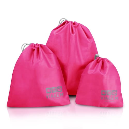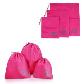 O kit organizador de três peças é o produto perfeito para aqueles que gostam de deixar tudo organizado em suas viagens. com seus largos compartimentos e fecho em cordão, eles possibilitam armazenar diversos produtos, sem perder a organização e o charme. praticidade para ir ao clube, academia, viagens e muito mais o kit inclui 3 bolsos nos tamanhos: p 25x21 m 32x27 g 41x37 material: poliéster marca: jacki design cor: pink 3 unidades