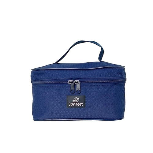 Bolsinha frasqueira necessarie organizador maquiagem viagem Cor: Azul escuro/ Geometrico Necessarie é um tipo de estojo para armazenar produtos de higiene pessoal, maquiagem e outros itens essenciais durante a viagens ou deslocamentos seja em lazer ou trabalho tornando também um acessório de moda. - Em tamanho compacto pode ser colocado dentro da mala viagem, bolsas tipo tote ou mochila, temos malas de viagem e mochila que fazem combinação com essa linda frasqueira.- Medidas: 25 cm largura x 15 cm altura x 11,50 cm lateral- Material: Nylon, alça de mão em poliester- Zípers duplo possibilitando colocar cadeado pequeno