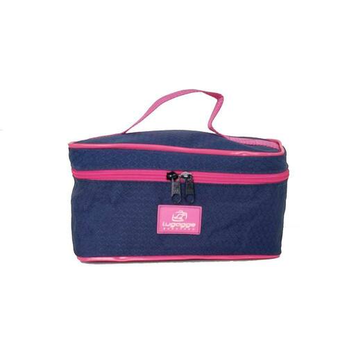 Bolsinha frasqueira necessarie organizador maquiagem viagem Cor: Azul marinho/ PINK Necessarie é um tipo de estojo para armazenar produtos de higiene pessoal, maquiagem e outros itens essenciais durante a viagens ou deslocamentos seja em lazer ou trabalho tornando também um acessório de moda. - Em tamanho compacto pode ser colocado dentro da mala viagem, bolsas tipo tote ou mochila, temos malas de viagem e mochila que fazem combinação com essa linda frasqueira.- Medidas: 25 cm largura x 15 cm altura x 11,50 cm lateral- Material: Nylon, alça de mão em poliester- Zípers duplo possibilitando colocar cadeado pequeno