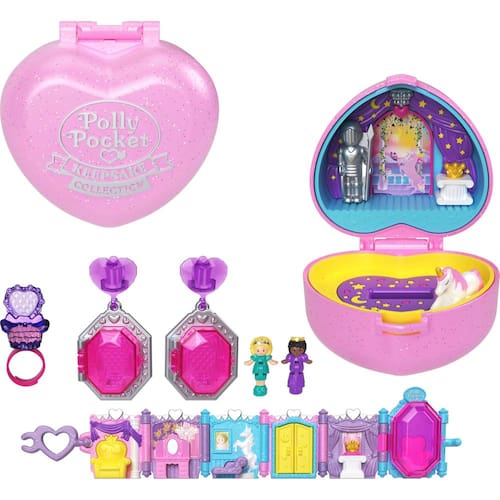 Polly Edição de Bolso Conjunto compacto de colecionador com 2 bonecas, coleção Lembrança, conjunto de acessórios de joias de bola real, brinquedo colecionável com tema de castelo de unicórnio