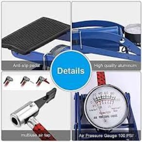 Alta Capacidade: Infla até 100 lbs por polegada quadrada, garantindo eficiência para diversas aplicações. Design Compacto e Resistente: Fácil de transportar e com alta durabilidade. Mangueira Resistente: Com 45 cm de comprimento, feita para suportar uso contínuo. Pedal Emborrachado: Proporciona maior conforto e estabilidade durante o uso. Conector Rápido em Metal: Fixação segura e eficiente. Versatilidade: Acompanha 1 bico e 1 adaptador para diferentes tipos de uso. Dimensões: Inflador com tamanho de 22 cm.