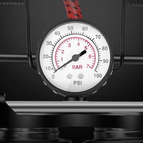 Cilindro Duplo Selado: Garante inflagem rápida e com alta pressão, economizando tempo e esforço; Pedal Ergonômico: Design confortável para uso prático e eficiente; Tanque Duplo: Maior capacidade de compressão para desempenho superior; Manômetro com Lente de Acrílico: Permite acompanhar a pressão com precisão durante a inflagem; Mangueira de Borracha Revestida: Oferece maior durabilidade e flexibilidade.