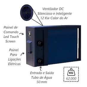 Obs: É indicado que a instalação seja feita em local aberto, pois utiliza o calor do ar para o funcionamento (12kw de calor do ar e 1kw de fonte de alimentação).