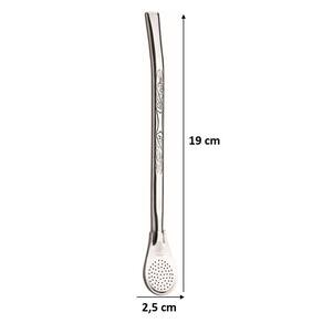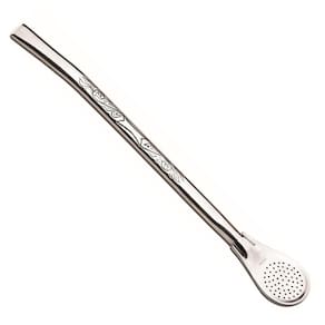 Bomba para chimarrão em aço inoxidável, abaulada, com um delicado desenho no corpo do cano.