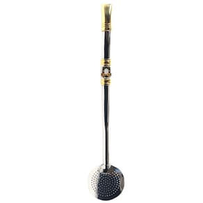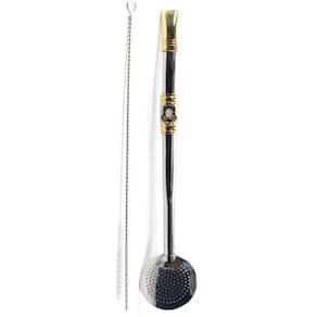 Tradição e qualidade para o seu mate ficar mais saboroso! Banhada a ouro 18K ela possui a rosca desmontável para após de encerrada a roda de chimarrão, fazer aquela limpeza da bomba, nesse momento você só precisa desenroscar o bojo e lavar com água corrente e usar a escovinha de auxilio para a limpeza. Pode ser usada para chimarrão, mate ou terere. Com pingentes variados aposte nesta bomba para compor sua cuia.