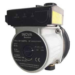 Bomba Circuladora GP-120PPA InovaBem Vindo Ao Meu Aquecedor!Aqui você encontra produtos com alta qualidade, você cliente, é muito importante para o desenvolvimento da performance desta empresa, trabalhamos duro para gerar a melhor experiência de compra para você, portanto qualquer sugestão, orientação é muito bem vinda para que possamos alcançar a excelência em nosso atendimento.Tenha confiança ao realizar suas compras conosco, pois estamos prontos para oferecer o atendimento que você merece. Em caso de qualquer problema após a compra, nossa equipe de pós-venda está preparada para auxiliá-lo. Nosso compromisso é garantir a total satisfação do cliente, tanto no atendimento quanto nos produtos oferecidos. Dessa forma, estabelecemos uma relação de confiança com nossos compradores.Sobre O Produto;A bomba circuladora / pressurizadora inova permite aumentar a pressão da água de uma rede hidráulica, possui uma entrada ou tubo que suga a água e posteriormente o líquido é conduzido por um motor em direção ao tubo de saída, isso faz com que a água saia com muito mais pressão e rapidez, não hesite em ver os recursos que este produto oferece pois essa pode ser uma excelente opção para você.Maior potência: graças à sua potência de 120w. Este pressurizador permitirá que você aumente a pressão da água quente ou fria, a um fluxo constante sem dúvida você terá o conforto necessário para realizar suas tarefas diárias.· Utilizada com aquecedores de passagem até 10 litros/min· Fixação direta no aquecedor de passagem· Totalmente silenciosas· Compactas leves e de fácil instalação· Bombas sem selo mecânico· Motor isento de vibrações· Funcionamento automático· Devem ser instaladas abaixo do nível da caixa d’água· GP-120ppa possui material não corrosivo.Dimensões do Produto:- peso: 9 kg- comprimento: 13 cm- largura: 11 cm- altura: 16 cm.Garantia: 2 anos de garantia de fábrica contra defeito de fabricação.