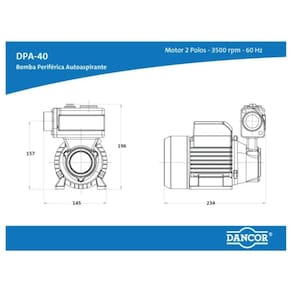 Bomba D'Água 1/2 CV Periferica DPA-40 95280005 Bivolt DANCOR